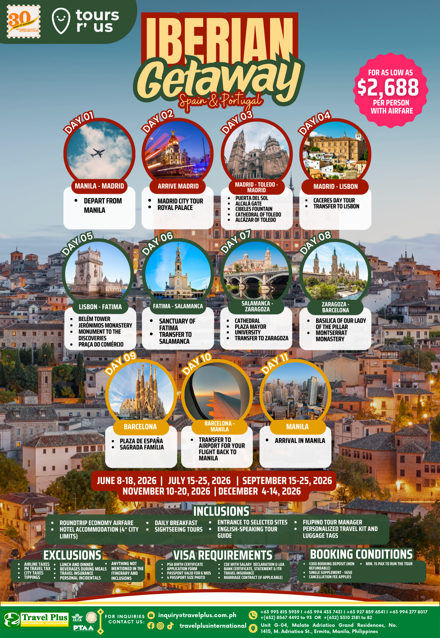 All packages are non-rebookable, non-endorsable, and non-refundable once confirmed. Full cancellation charges apply for cancellations made within 30 days of departure.