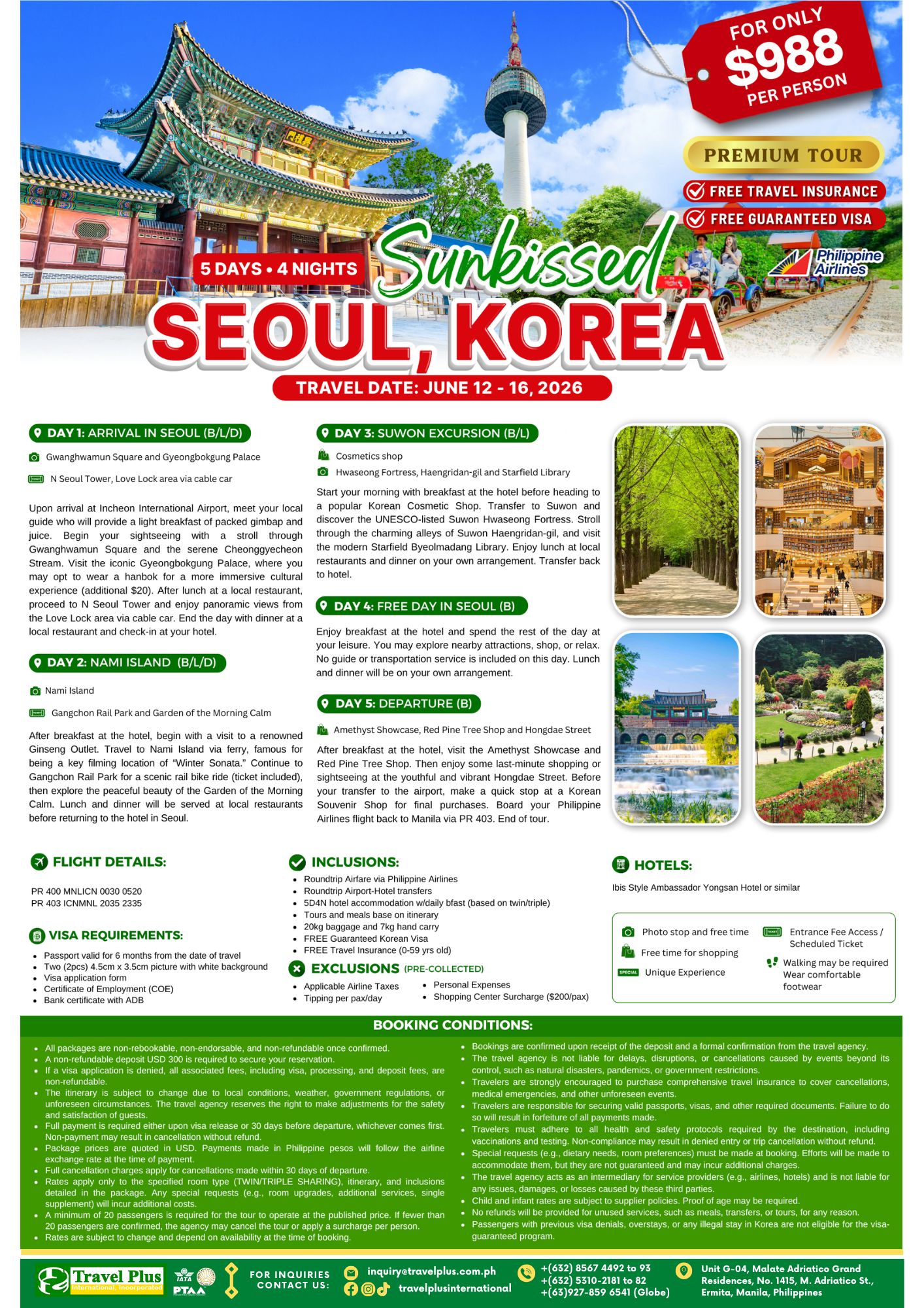• 5D4N hotel accommodation w/ daily breakfast (based on twin/triple)